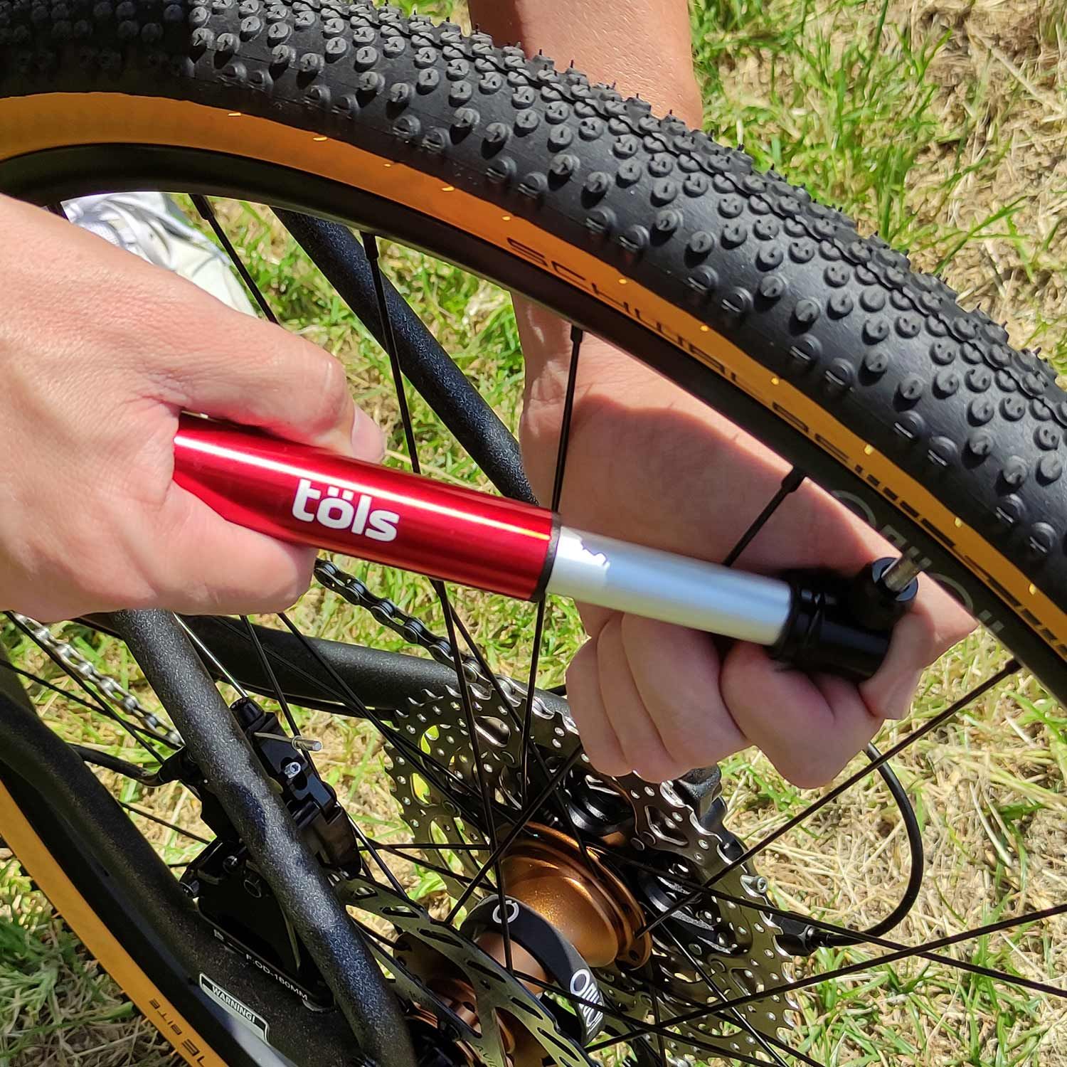 Trotz der kompakten Abmasse ist die Aina Handpumpe mit einer maximalen Pumpleistung von 8 Bar äusserst leistungsstark und passt optimal in die Trikottasche, bei einem Gewicht von ca. 60g kaum spürbar. Für den Transport an Deinem Rennrad, Gravel- oder Mountainbike ist eine Rahmenhalterung im Lieferumfang enthalten, welche mit einen Gummi-Strap ausgestattet, ist damit Dein kleiner, starker Unterstützer auf ruppigen Schotterpisten oder Trails nicht verloren geht. Der Presta Pumpenkopf, mit einer groben Perforierung, lässt sich einfach auf das Ventil schrauben und hat einen sicheren Halt.